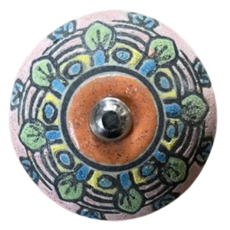 Share Ceramic Round Knob - Green, Yellow and Blue Pattern