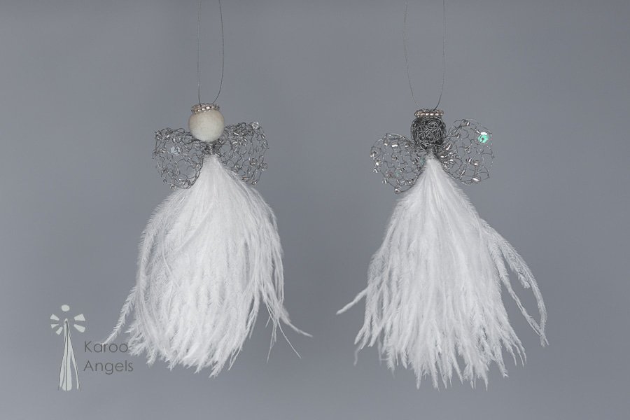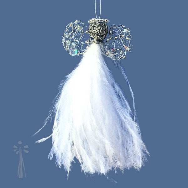 The small feather angels are 11-13 cm long – an ideal size to hang on a Christmas tree, or in a window – or use as a small gift to someone who deserves something really special… Please notice that the feathers might appear a bit “flat” when packed – but when the angel is exposed to air, the feathers will unfold and look more and more fluffy and voluminous.