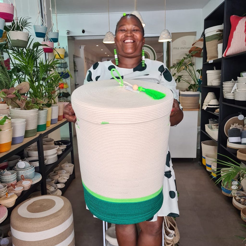 Mia Mélange baskets are made from 100% cotton rope which we carefully sew together in a coiling technique. The cotton is grown locally in South Africa by farmers who are members of the Better Cotton Initiative (BCI).