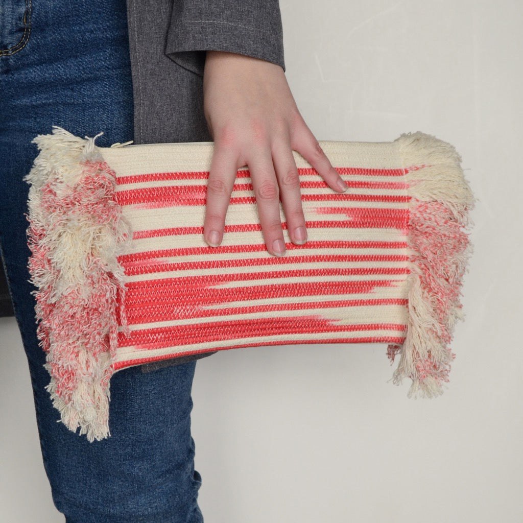 Make a statement with these unique frayed-edge bags! This clutch bag is handcrafted from 100% cotton rope. Faced with a high unemployment rate in South Africa, we're working on creating products that are labour-intensive so that we can create employment opportunties for women in our community. Fraying the edges of the Mane Clutch is very time consuming, and provides many hours of employment! And we're sure it will bring you many hours of enjoyment!