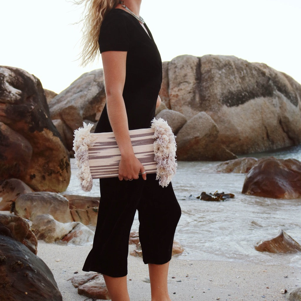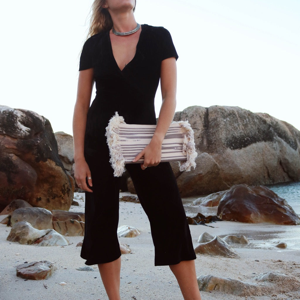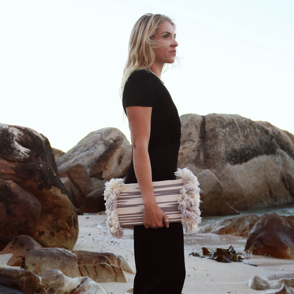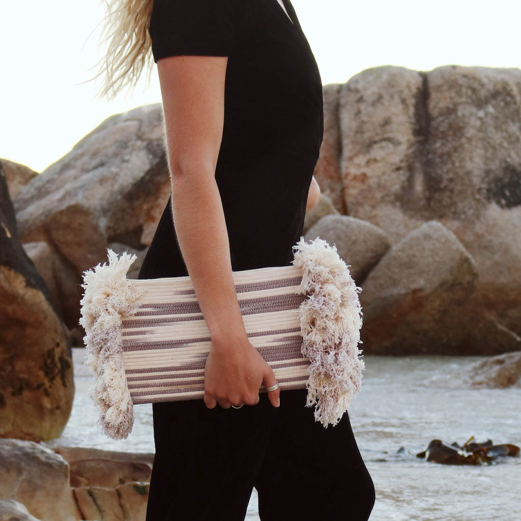 Make a statement with these unique frayed-edge bags! This clutch bag is handcrafted from 100% cotton rope. Faced with a high unemployment rate in South Africa, we're working on creating products that are labour-intensive so that we can create employment opportunties for women in our community. Fraying the edges of the Mane Clutch is very time consuming, and provides many hours of employment! And we're sure it will bring you many hours of enjoyment!