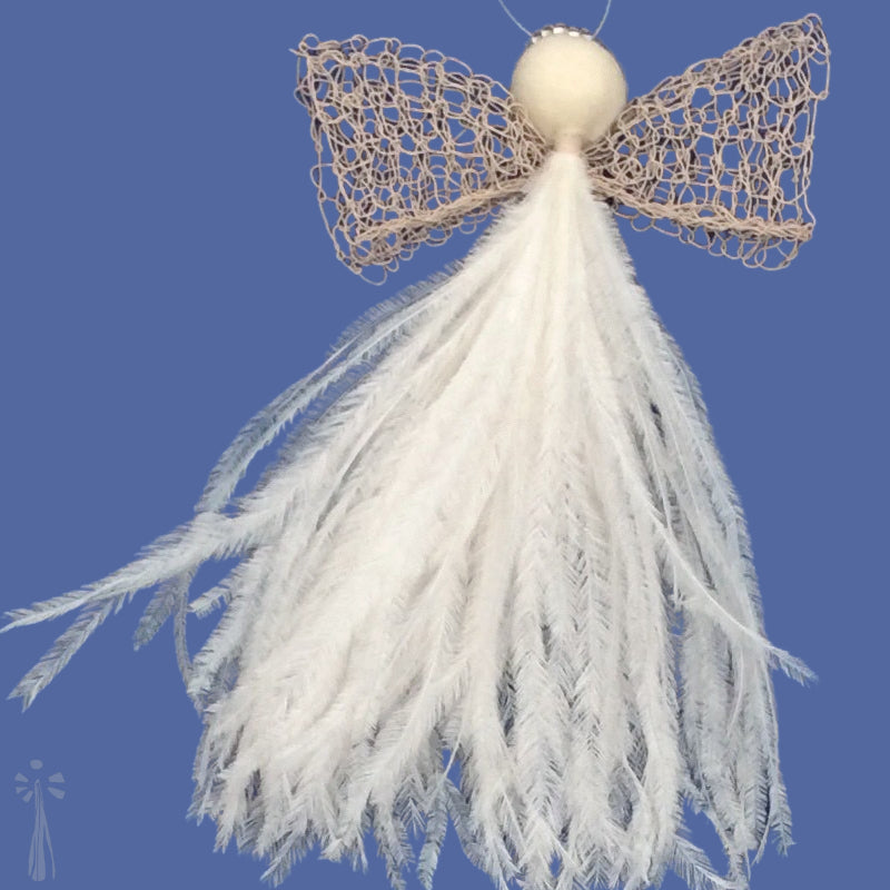 In late 2020 we were challenged to develop a special range for the Boschendal Winery Christmas Exhibition. The brief was to do something classical, a nod to timeless precious minerals. This was a challenge for us, because we have so far only worked with white, cream and black feathers, and all our own previous dyeing efforts of wool have proven difficult. But with good help of the vast options of dyed ostrich feathers from Cape International in Oudtshoorn, the wool dyeing experts at Adele´s Mohair in Port Alfred – adding on Preciosa’s famous beads – and last, but not least, our master crafters’ creativity and skills, we did manage to come up with some truly unique angels.
