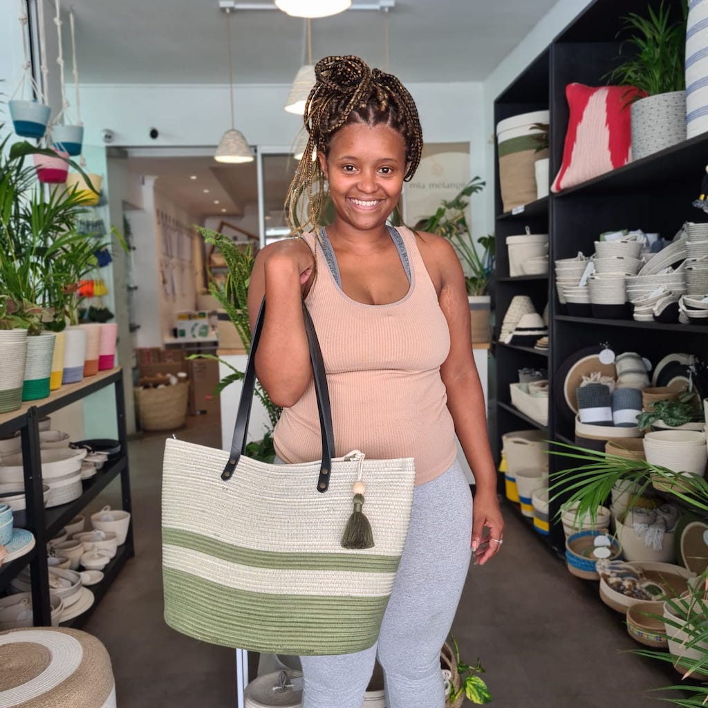 Mia Mélange baskets are made from 100% cotton rope which we carefully sew together in a coiling technique. The cotton is grown locally in South Africa by farmers who are members of the Better Cotton Initiative (BCI).