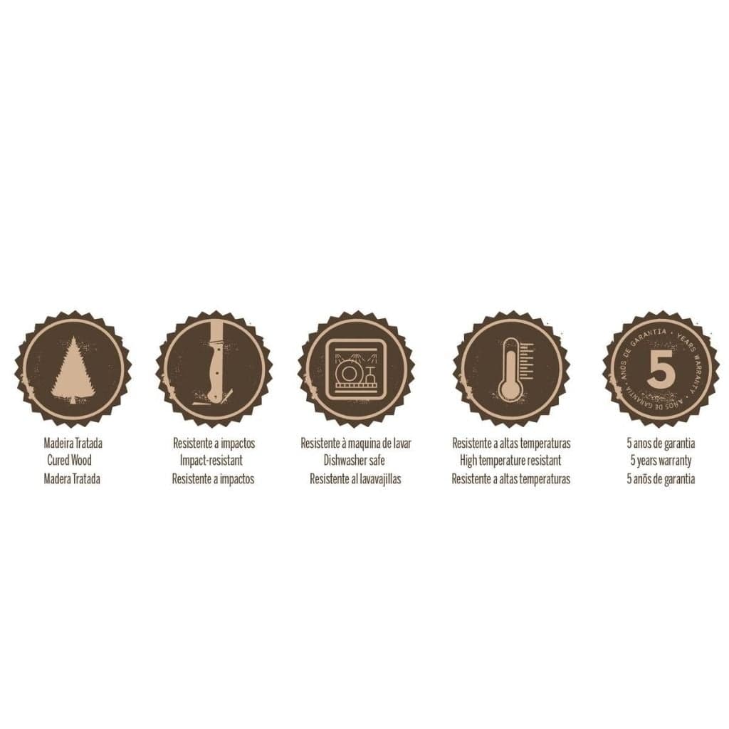 With Tramontina's 8-piece stainless steel braai, barbecue set with brown Polywood handles, wood cutting board, and case, you will have a complete set for preparing and serving the best barbecue, turning it into a true ritual. The knives and tongs are made of stainless steel and the honing steel is made of chrome-plated carbon steel. The pieces have treated Polywood handles, resistant to impact and heat, that add beauty to any occasion. The set also includes a case and wood cutting board. The Churrasco line is perfect for barbecue masters who want to impress.
