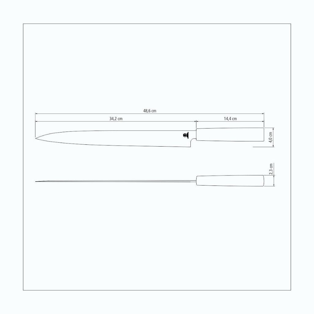 Yanagiba: This is the classic model in Japanese cuisine, with an elongated blade to ensure incredibly precise cuts. Essential for preparing sushi and sashimi pieces.
