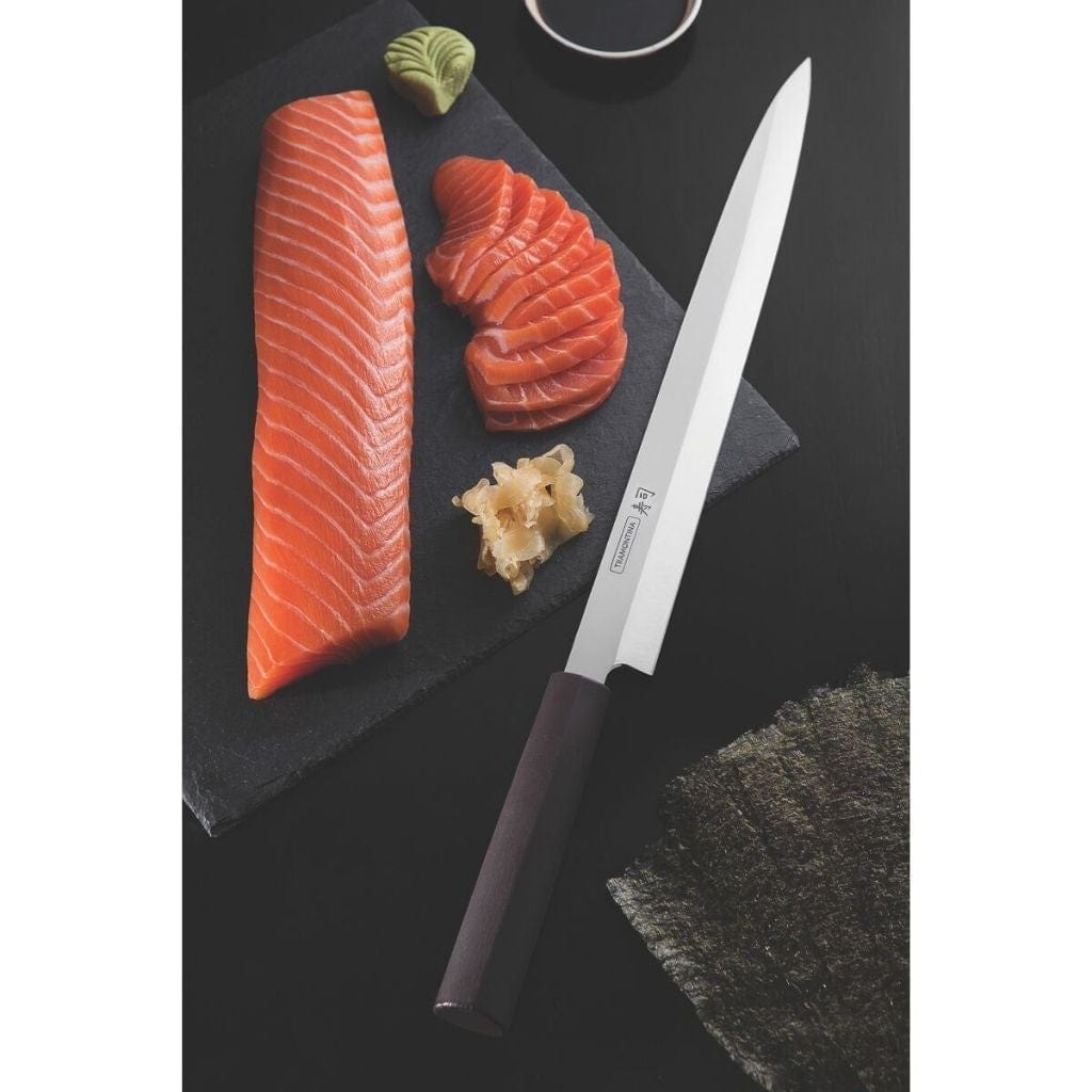 Created nearly two thousand years ago, sushi traverses the centuries as one of the most sophisticated expressions in Japanese cuisine. It's an ancient tradition that brings highly precise cuts and super delicate combinations. And Tramontina, with its century-old experience in the manufacturing of knives, now offers a special line to honour this beautifully well-done art.