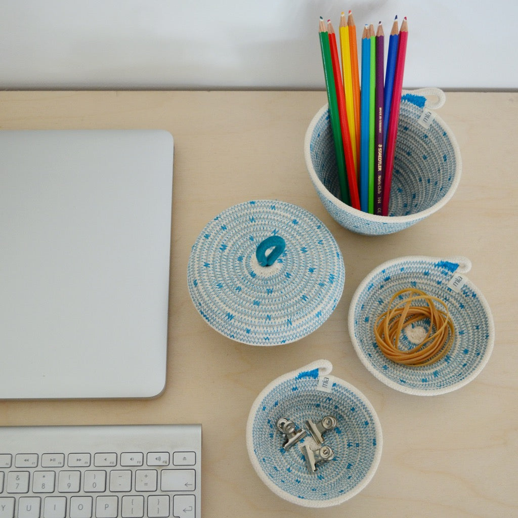 Use this cotton rope trinket tray to neatly store your jewellery on your bedside table. Or use the tray to store your coins. On your office desk, you can use the trinket tray to store things like paperclips neatly. Or you can store a pile of cotton wool on your bathroom shelf neatly in this tray.