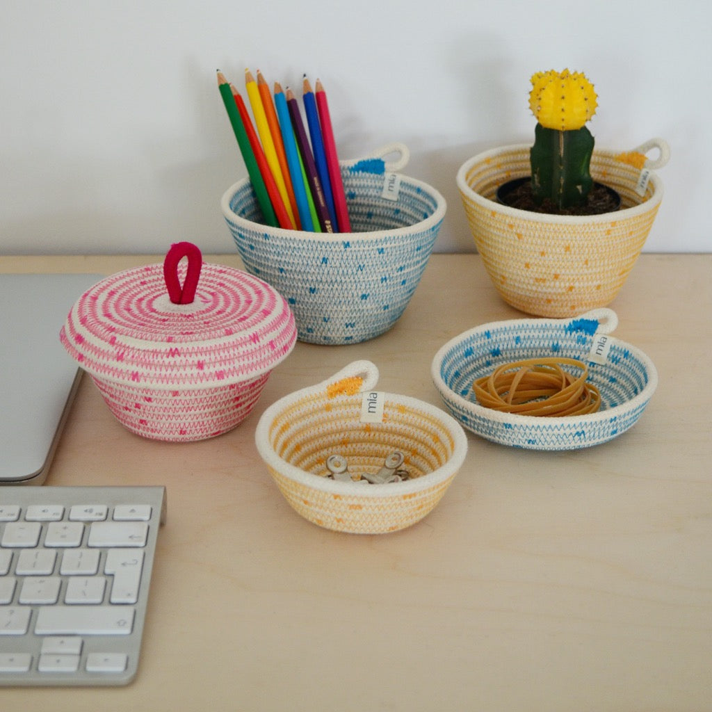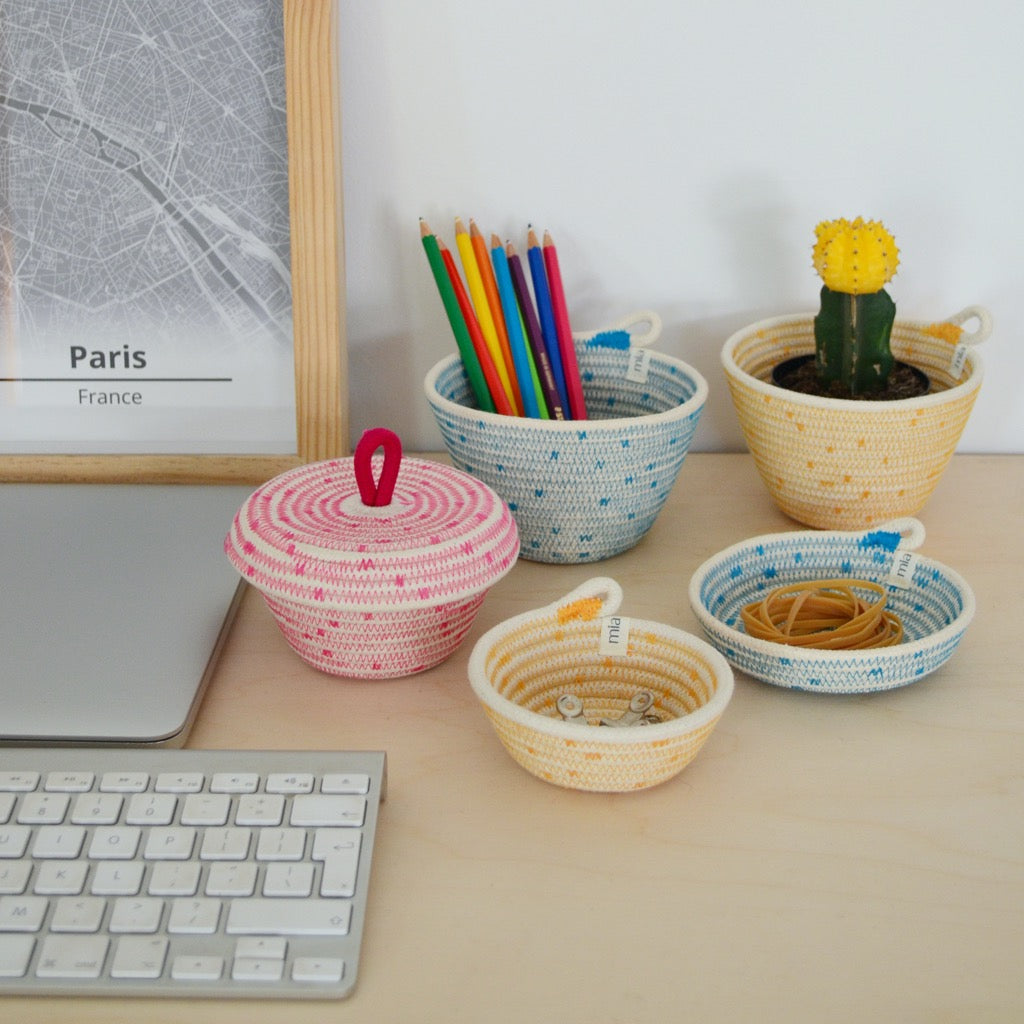 Make every day a polka dot party day with these fun cotton rope baskets from our Petite Collection! These petite products from this new collection make the perfect gift. Or gift them to yourself to keep your odds and ends neat at home or on your desk. Add some brightness to your home with these Tutti Frutti colours!