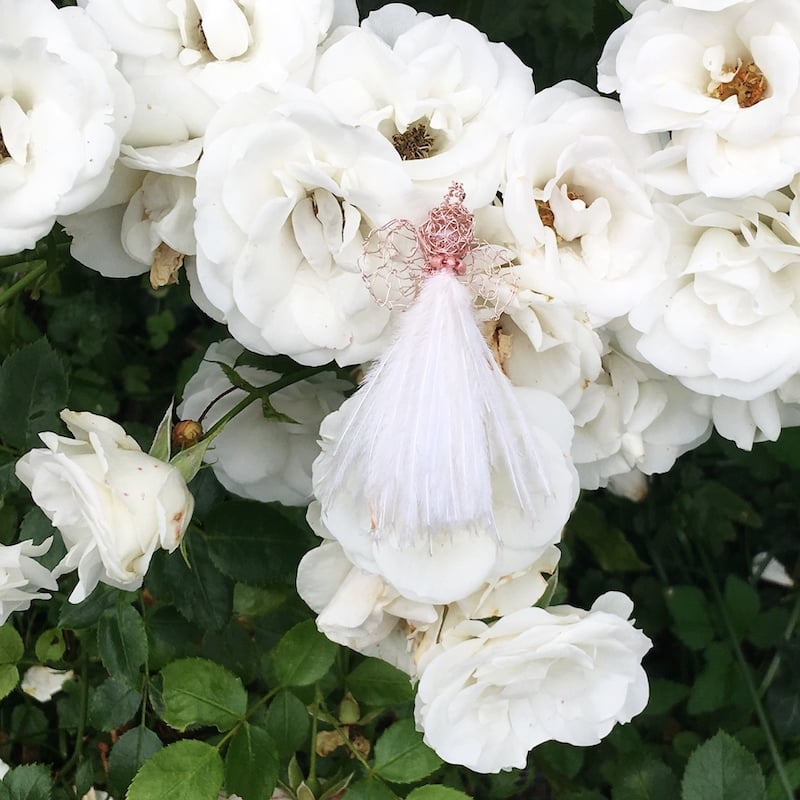 Karoo Angels - White Feathers and Rose Gold Wire Juweel Pendant