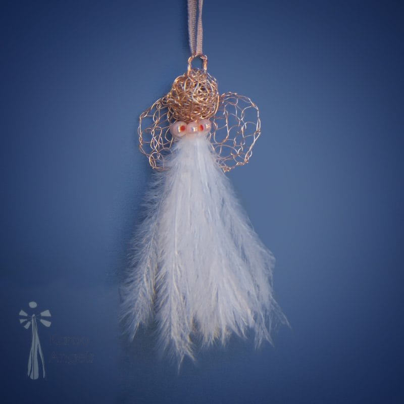 We have always dreamt of a Karoo Angels Jewellery range, and over the years we have been experimenting quite a lot, with Violet at Vondeling being the Master crafter in working out tiny, tiny versions of the classic range. But we knew that we needed a better wire that would not tear on clothes, only the best glass beads, as well as some exquisite type of ribbon. And in 2019 all finally came together – and we are so proud to present the Vondeling Juweels, in 6 different colour ways. The wire used is ultra thin coated copper wire, which indeed only skilled crafters can manage to knit with, a Preciosa glassbead is adding some weight to the pendant, and the matching hand dyed silk ribbon completes the look. We think the Juweel angels live up to their name: True gems! And of course you can use these miniature angels as decorations.