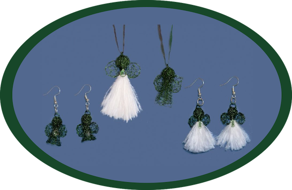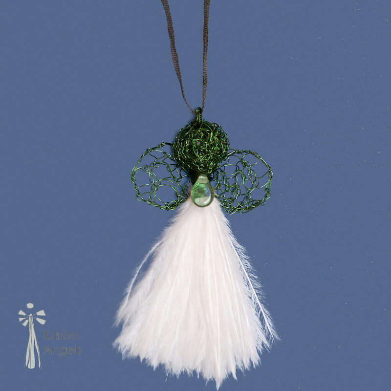 Share Karoo Angels - White Feathers and Leaf Green Wire Juweel Pendant