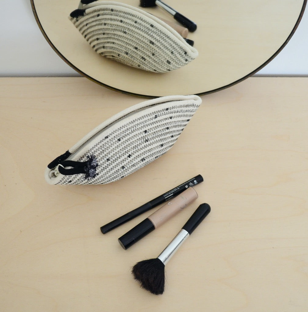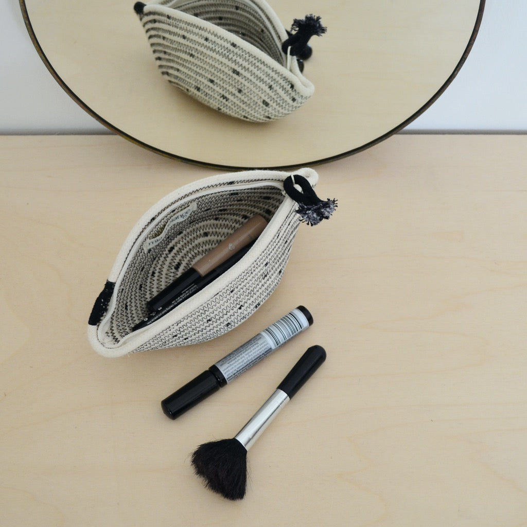 This cotton rope bag comes with a zip to safely store your goodies. This is the perfect pencil bag, or use it when traveling to keep things like your medication, makeup, or jewellery safe. This pouch can also be used as a reading glasses case. You can also use it to neatly store things like phone cables and earphones. Or use it as a little purse when going out!